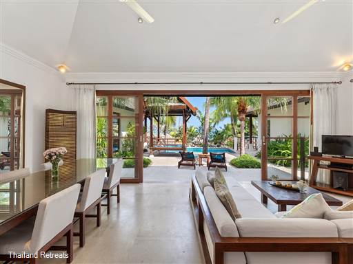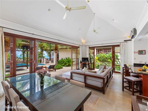 The spacious air-conditioned living area features wide-opening doors to enhance the breezy atmosphere while dining or lounging on plush sofas. The modern western-style kitchen is fully equipped to meet your culinary desires, creating a perfect space for family gatherings. The master suite boasts stunning sea views and a luxurious en-suite bathroom, complete with a bathtub for indulgent soaks after enjoyable days by the pool.