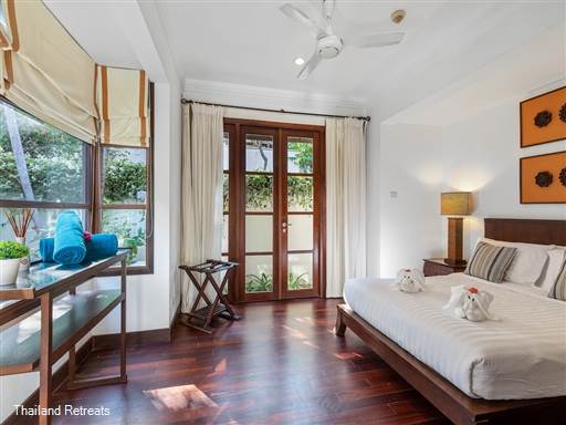 Two additional bedrooms offer comfortable sleeping arrangements, each featuring their own bathrooms and elegant wooden parquet floors. Aqua Vista 25 is perfect for families seeking peace and tranquility in a private setting, yet conveniently located just minutes from the lively atmosphere of Chaweng beach.