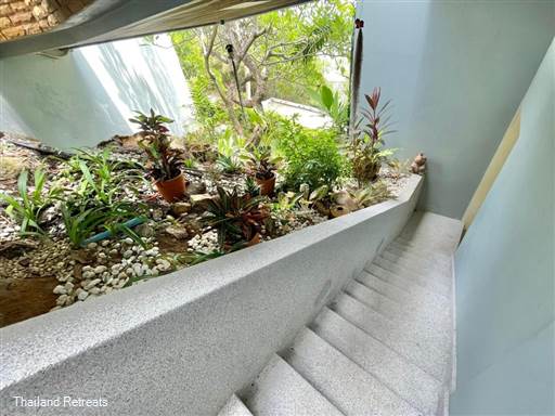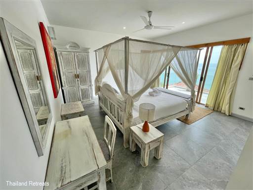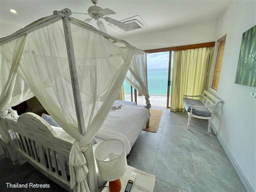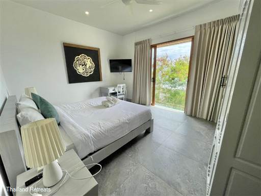 Baan Talay Sai Villa offers an additional guest bedroom located on the lower floor accessible via a staircase leading down from gated entrance to the pool terrace. This guest bedroom also offers sea views through large windows with full air-conditioning, private en-suite shower room, smart TV with Netflix service and hairdryer.
