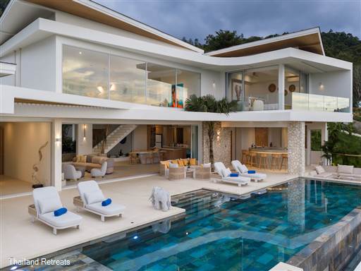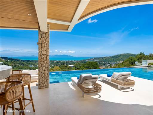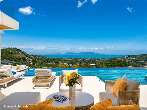 Bow Villa is a luxurious 4-bedroom retreat perched in BoPhut Hills, Koh Samui, offering stunning panoramic sea views. Featuring a spacious private infinity pool, outdoor bar, and modern amenities, this elegantly designed villa is perfect for families or friends seeking a tranquil escape amidst lush tropical surroundings.