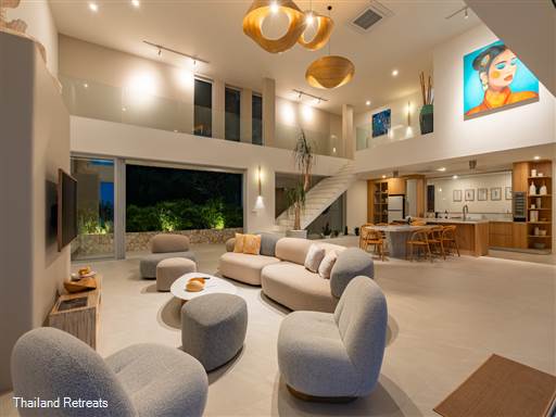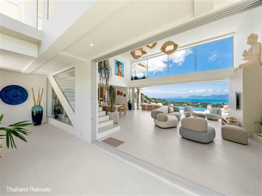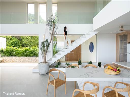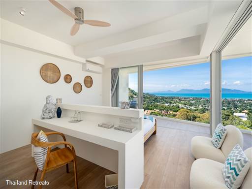 Bow Villa is a luxurious 4-bedroom sanctuary that redefines modern elegance in the heart of Koh Samui. Nestled high above the stunning landscape of BoPhut, this newly constructed villa offers breathtaking 180-degree views of the beautiful Koh Phangan Island, surrounded by lush tropical vegetation that provides both privacy and a sense of peace.