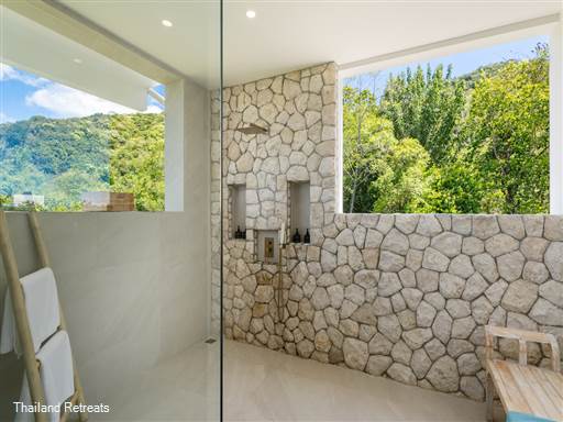 All four elegantly designed bedrooms are equipped with air conditioning, personal safes, and breathtaking views. The master suite boasts an outdoor shower that opens up to stunning vistas, while each ensuite bathroom is outfitted with modern fixtures ensuring comfort and convenience for every guest. Privacy is paramount, allowing for restful nights and rejuvenation throughout your stay.