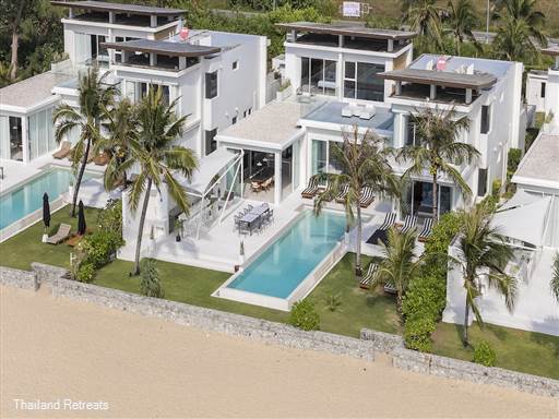 Discover the beauty of coastal living at Coastal Escape Natai, a collection of four luxurious beachfront villas located in the serene town of Khok Kloi, Phang-Nga. Each villa features five elegantly appointed bedrooms, accommodating up to 10 guests, making it the perfect setting for intimate beach parties or lively family gatherings. With their mid-century character, these pavilion-like homes showcase expansive glass walls, reinforced concrete, and open-plan layouts that epitomize modernist design and provide stunning views of the surrounding tropical landscape.