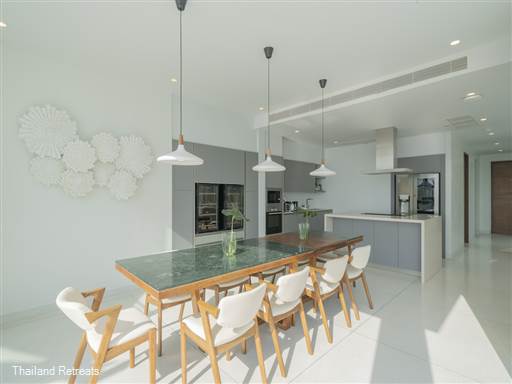 Coastal Escape Natai’s five bedrooms are thoughtfully designed, ensuring comfort and privacy for all guests. Two of the bedrooms are conveniently located on the ground floor alongside the living and dining areas, while three additional bedrooms, including the master suite, are situated on the upper floor. Each room features modern furnishings and en-suite facilities, providing a tranquil retreat after a day of enjoying the sun and sand.