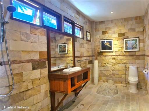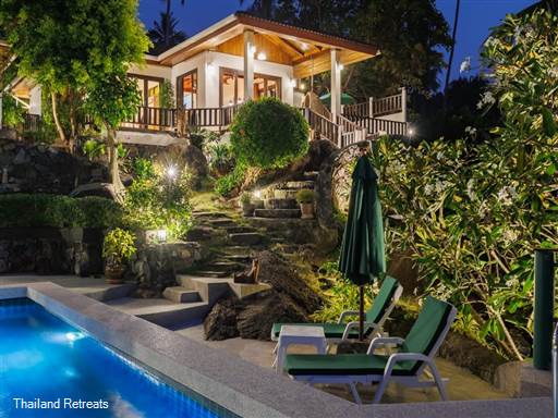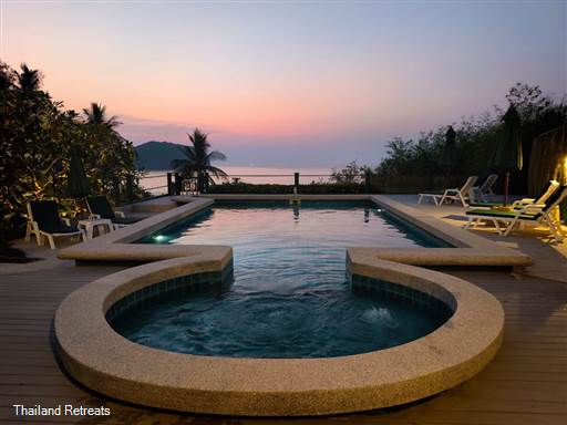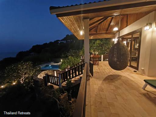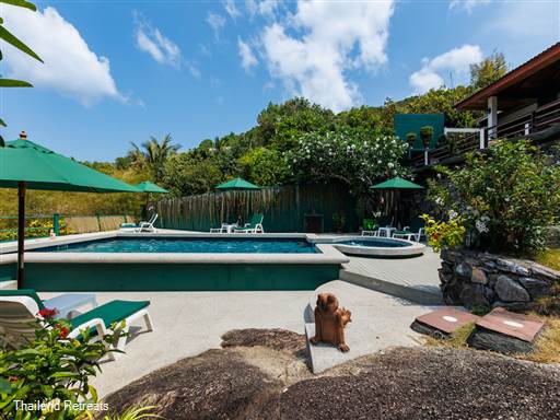 The villas are set in beautiful mature Thai/Chinese style gardens with contemporary Chinese ornaments, a herb garden and over 50 varieties of flowers and plants making it a nature haven for butterflies. The hammock sala is situated ten meters above the beach with hammocks, dimmer lights and power points and steps down to the beach. A family friendly swimming pool with built-in jacuzzi/kids-pool, generous decking, sun beds and parasols is located in the middle tier.