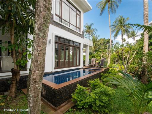 Gardenia Pool Villa is a spacious and airy 2 bedroom villa with 153 sqm (1680 sq. ft.) of in/outdoor living space.