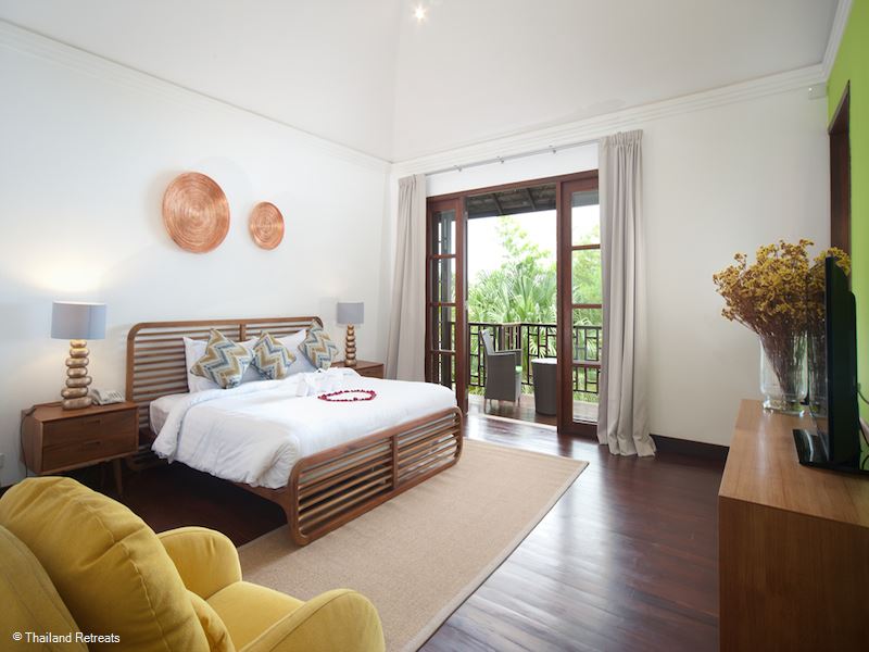 The room is tastefully furnished with thai artifacts,attractive bright coloured soft furnishings and thai art wall hangings and for your entertainment there is a flat screen satellite TV/DVD player and music centre