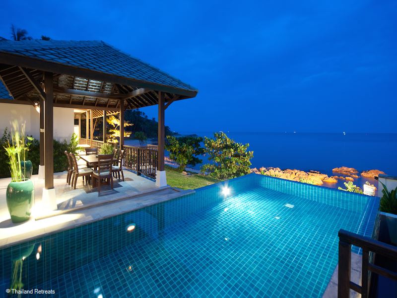 To one side of the pool overlooking the beach is a cool dining sala furnished with a table and chairs and perfect for al fresco dining. On the other side of the pool and close to the living pavilion is another cool sala which is typical of thai living with a mattress and thai triangular cushions which is a great retreat away from the sun where you can relax and read.