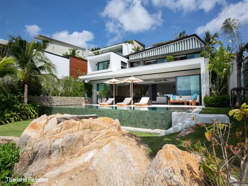 Villa Muscat is a luxurious 3-bedroom villa within the exclusive Kerem Villas complex in Koh Samui. Offering stunning 180-degree sea views, direct beach access, an infinity pool, and modern amenities, it's perfect for a tranquil getaway with family and friends.