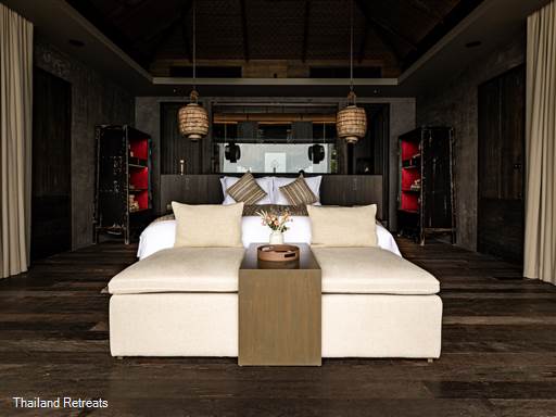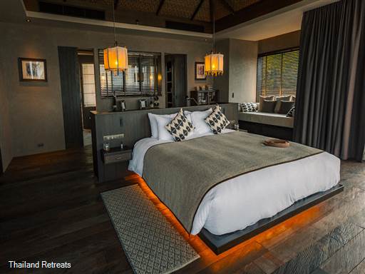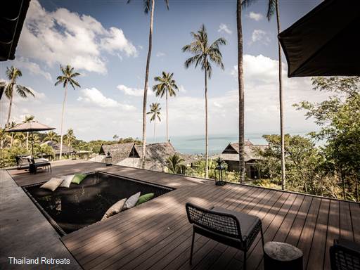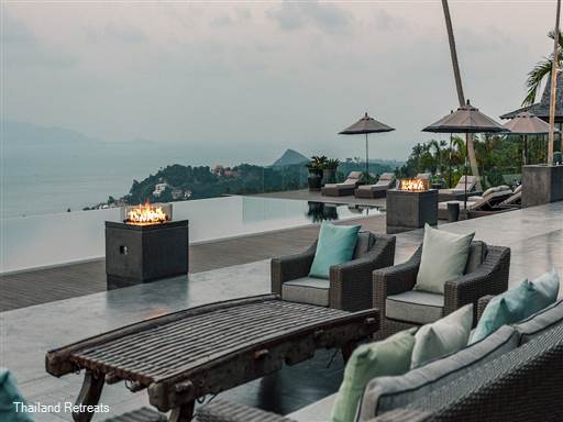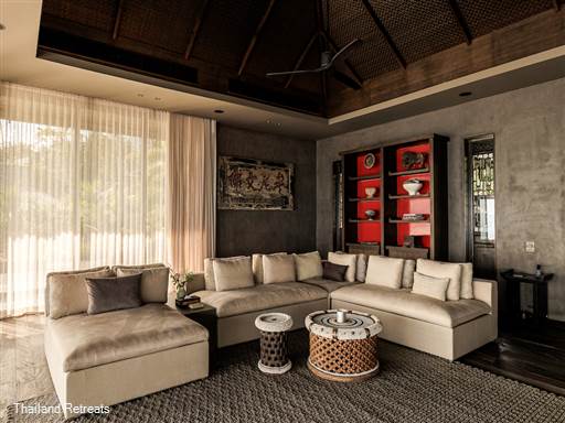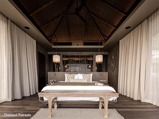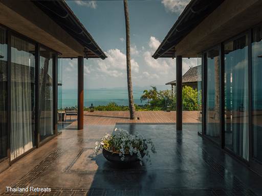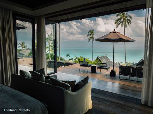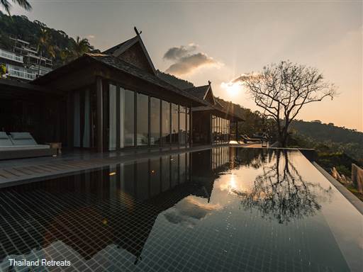 Grand Master Villa - Shalimar: Spanning an impressive 480 square meters, Shalimar features a private cinema, a fully equipped kitchen, and an indoor/outdoor lounge area. The elegant design harmonizes modern decor with traditional Thai elements, creating a serene atmosphere that complements the stunning ocean views. Guests can relax in their private saltwater pool or unwind on the sunbathing deck.
