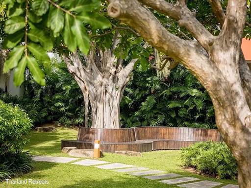 Six Hills Villa is a beautifully designed 5 en-suite bedroom retreat nestled in the peaceful area of Plai Laem and thougfully spread across to main buildings. From the moment you enter, you'll be captivated by the lush, expansive garden with a majestic banyan tree as its stunning centerpiece, setting the tone for a tropical escape like no other.