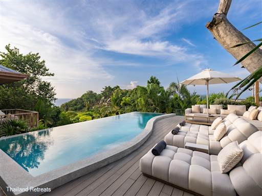 Villa Divano is a luxurious 5-bedroom villa set in the lush hills of Plai Laem, Koh Samui. This stunning retreat features a private saltwater pool, a fully equipped gym, and breathtaking sea views, making it perfect for families and groups looking for relaxation and comfort in paradise.