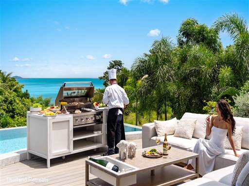 If you’re looking to maintain your fitness routine while on vacation, the private gym at Villa Divano is fully outfitted with modern exercise equipment, providing a convenient space for workouts or yoga sessions with ocean views. Additionally, wellness is prioritized here, with an array of spa treatments available in the comfort of your villa. From traditional Thai massages to rejuvenating beauty rituals, these services are designed to enhance your well-being and relaxation.