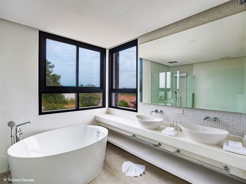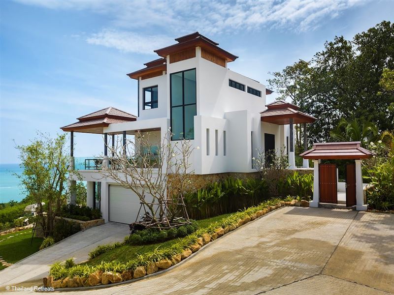 Villa Hruhra is a recently built luxury holiday rental villa located in the popular north east of Koh Samui. The accommodation represents contemporary living and sophistication with it's modern and sharp style spread over 3 floors. This private villa with swimming pool enjoys beautiful views over Choeng Mon bay, a safe lawned garden and has the advantage of both sunrise and sunset views.