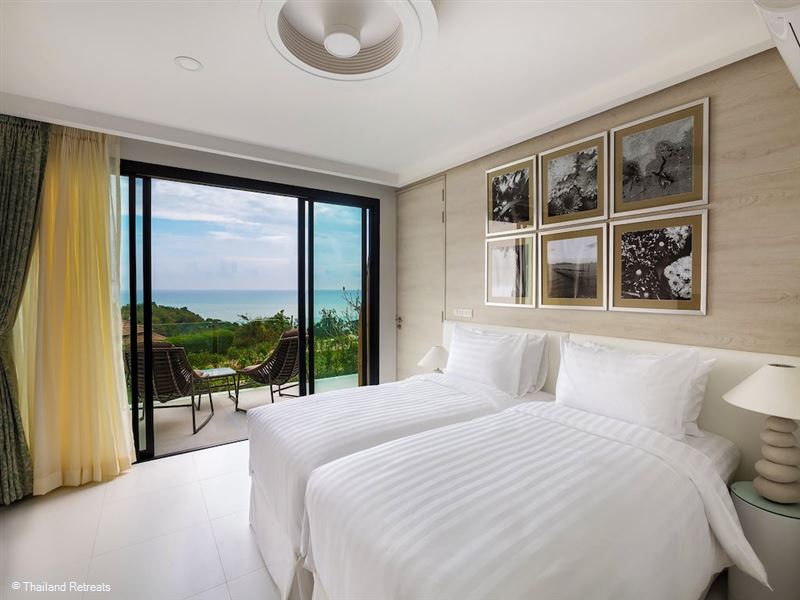 Two guest bedrooms can be found on ground level but the villa is elevated enough to still enjoy the sea views and also overlooks the well kept lawn. Both bedrooms have en suite bathrooms with walk in shower and there are twin beds in 1 room and a king bed in the other. There is also a connecting door between these two bedrooms and therefore ideal for families with young children away from the pool. The twin beds can be made up to a king if required.
