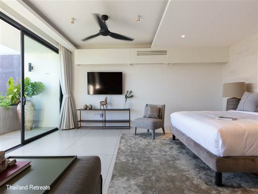 Positioned on the upper terrace level, Villa Muscat ensures privacy and tranquility while still being just a few steps away from the shared private beach. Each of the three elegant bedroom suites features its own private balcony, soundproof walls, blackout curtains, large flat-screen TVs (Netflix-enabled), and personal safes for added convenience. The ensuite bathrooms are fully appointed, complete with his-and-her sinks, walk-in rain showers, and plush bathrobes and slippers, ensuring that all guests enjoy a luxurious stay.