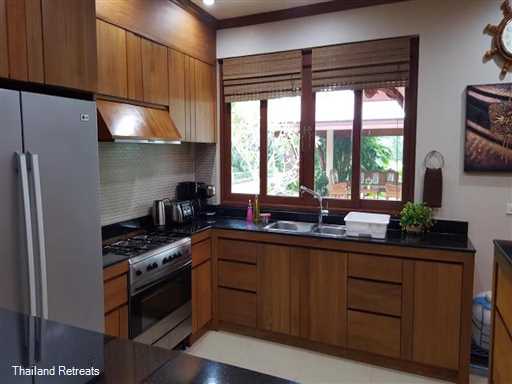 Villa Saifon's large kitchen is fully equipped for all your cooking needs including a large gas oven with 5 stovetop burners, large fridge/freezer, micro wave oven, coffee machine, espresso machine, toaster, rice cooker, blender, waffle maker, quality cookware, and of course, a gas BBQ outside.