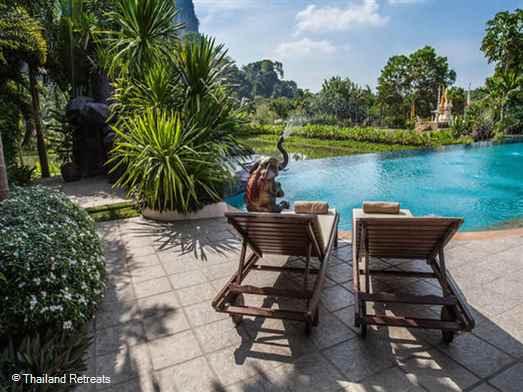 Villa Saifon 2 is spacious 5 bedroom Thai style self catering villa with a beautiful backdrop of Krabi's signature limestone mountains and features a super 19m swimming pool. Just a short drive from the shops restaurants and beaches of Ao Nang. The villa is staffed with a chef service available on request.