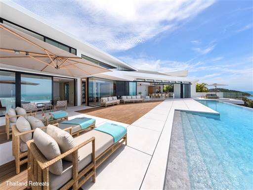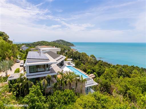 Villa Sutra is a contemporary four-bedroom luxury villa perched in the hills above Chaweng on the north-east coast of Koh Samui. Set within a private estate, the villa boasts sweeping panoramic sea views across the Gulf of Thailand and nearby islands, while remaining just a short drive from the vibrant centre of Chaweng.