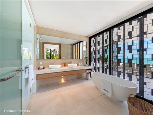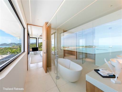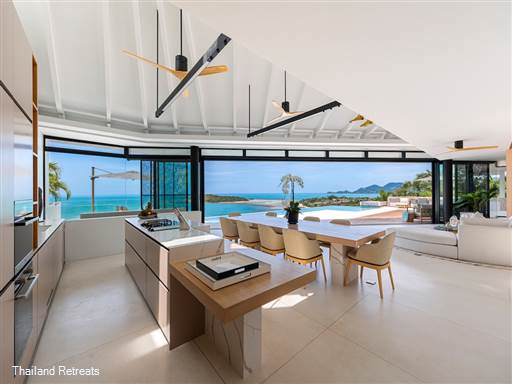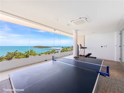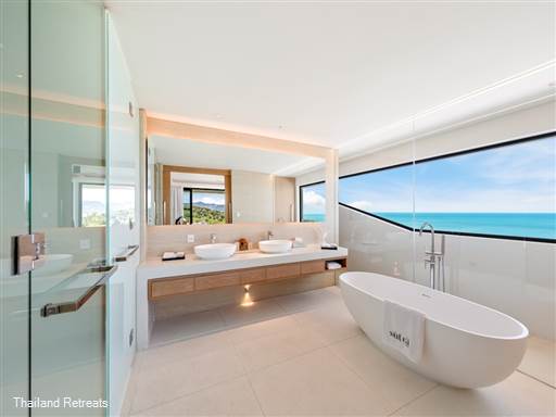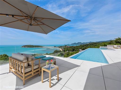 Villa Sutra is a luxurious 4 bedroom sea view villa in the hills above Chaweng, Koh Samui featuring an 18 metre infinity pool, private spa with sauna and steam room, gym, cinema room and full villa staff including a private chef.