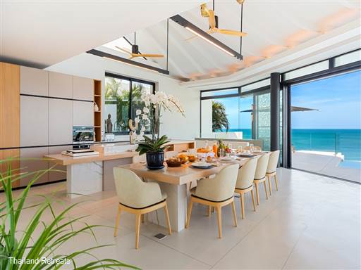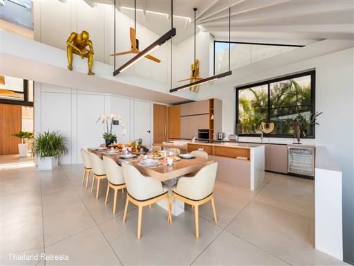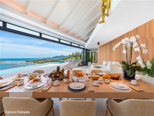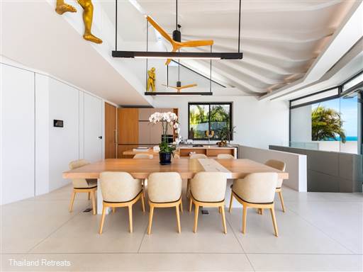 Dining at Villa Sutra can be enjoyed indoors at the dining table for up to ten guests, or outside on the terrace. A fully equipped kitchen is available, although most guests prefer to indulge in meals prepared by the villa’s private chef, who crafts both Thai and international dishes using fresh, locally sourced ingredients.