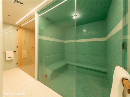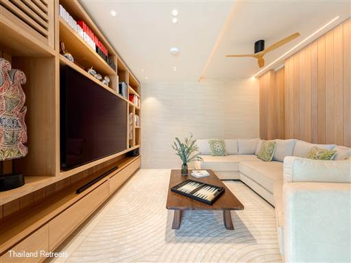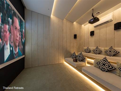 For leisure and entertainment, the villa offers a private cinema room with streaming services and PlayStation, a spa area complete with massage bed, sauna, and steam room, and a fully equipped gym featuring a treadmill, weights, and table tennis.