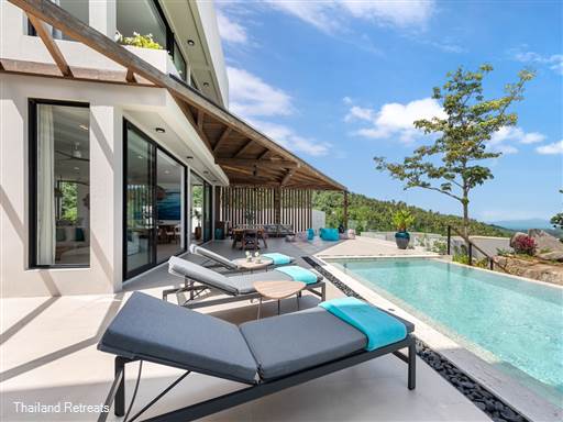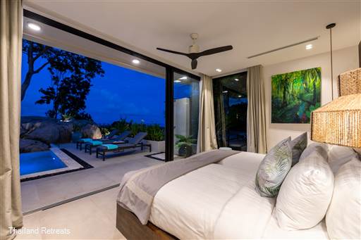It features a spacious master bedroom with breathtaking views over Koh Samui bay, along with three additional bedrooms equipped with the finest amenities.