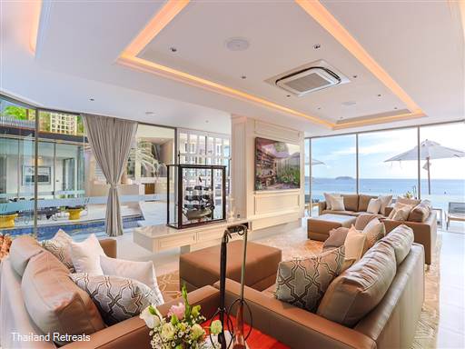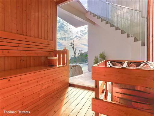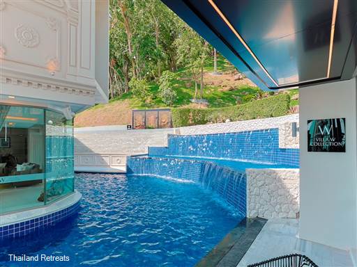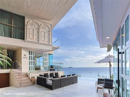 Villa W Collection is a modern luxury 9 bedroom waterfront villa set 50m above and with direct access to Ao Sane beach (50m) and just 800m from the popular Nai Harn beach. Features include 3 swimming pools, 2 saunas and a fitness room