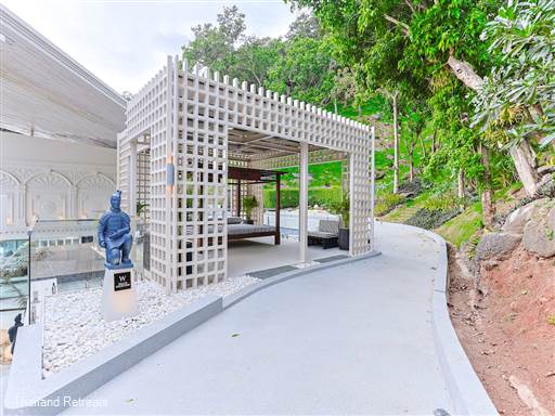 The outdoor areas of Villa W Collection are equally impressive, designed to offer multiple spaces for relaxation, socialising, and enjoying the tropical climate. The villa features three stunning swimming pools, each with its own unique charm. The main pool, a 16.5m x 3.5m infinity-edge pool, provides breathtaking views over the Andaman Sea and includes an integrated 10-seater jacuzzi. A second pool, the fountain pool, adds to the serene ambiance, while the third pool, located by the second annexe, offers a more private swimming experience.