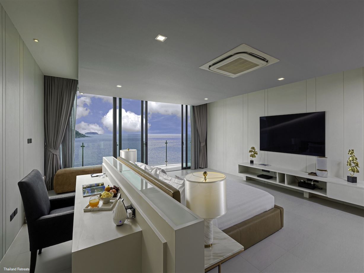 The villa masterfully blends indoor and outdoor living spaces, offering guests a seamless transition between the luxurious interiors and the breathtaking natural surroundings. The villa’s expansive open-plan areas, equipped with modern amenities and elegant furnishings, provide the ultimate in comfort and style. Complementing these interiors are the stunning outdoor spaces, featuring a 30-metre infinity pool, sun terraces, all designed to maximise relaxation and enjoyment of the spectacular Andaman Sea views.